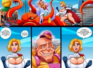 Descrição: Os heróis da DC estão sendo atacados por um louco da quinta dimensão. Para evitar todo esse caos, o velho doido sugere uma “brincadeira” com a Poderosa, que aceita não sabendo que essa brincadeira vai levar para a putaria.