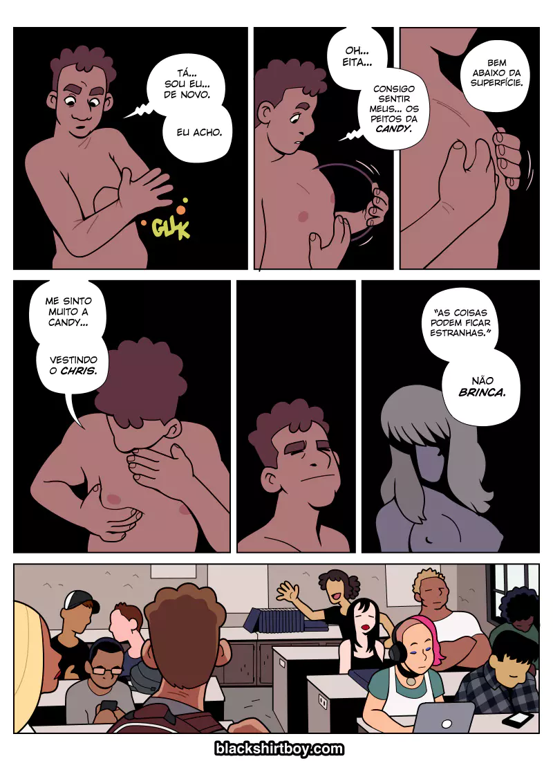 Descrição: O rapaz, depois de passar muito tempo na pele de “mulher”, acaba estranhando quando volta para sua pele de homem normal. Será que essa estranheza vai parar ou ele vai ter que voltar para sua pele de mulher?