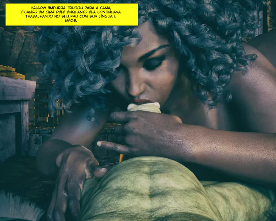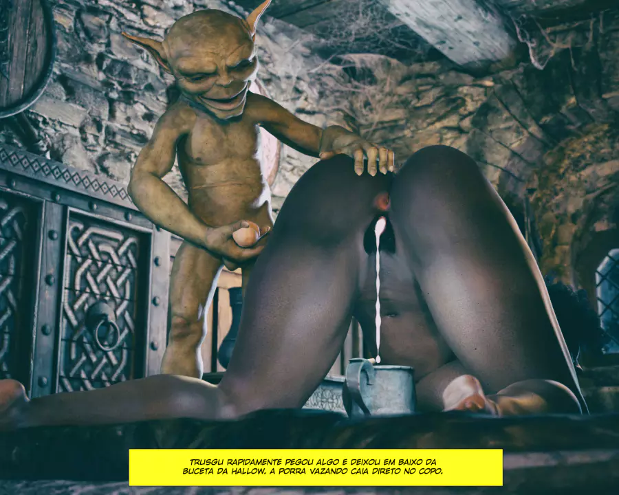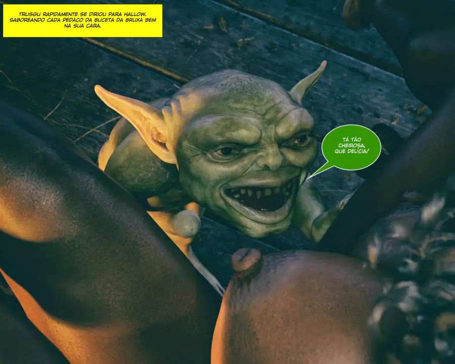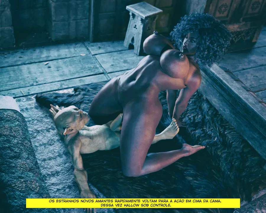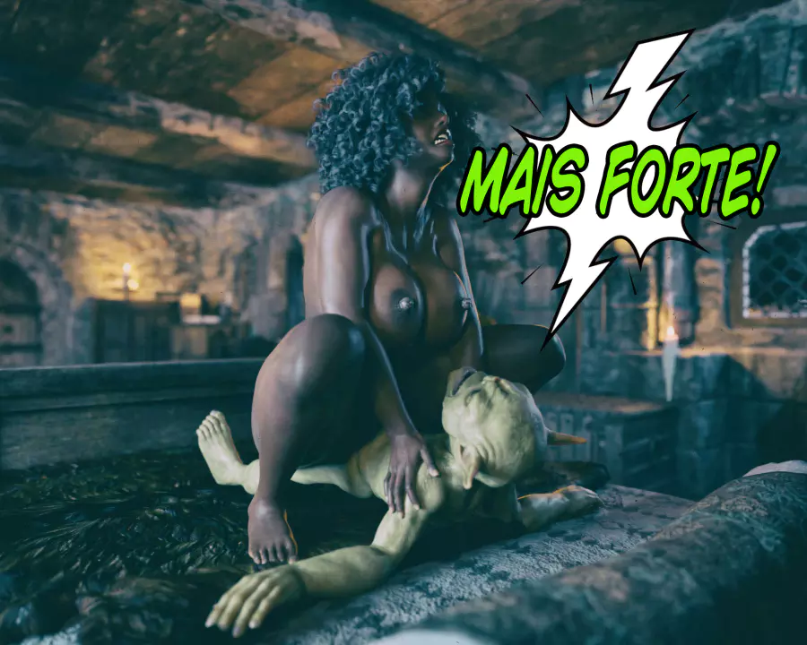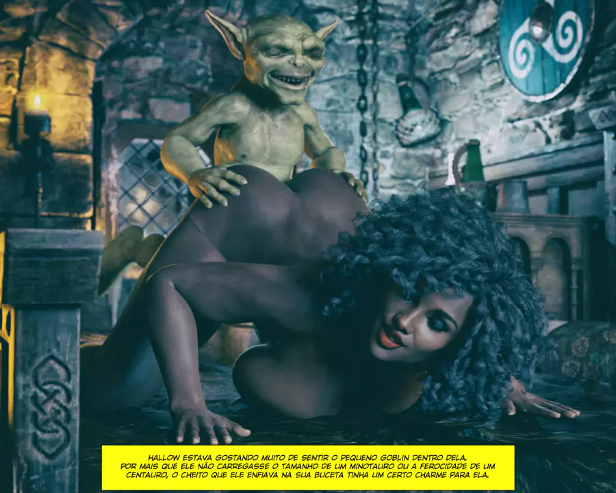Descrição: Hollow, uma bruxa já formada, está procurando aumentar seus poderes fazendo alguns feitiços que precisam de ingredientes específicos. Um desses é o esperma de goblin, que infelizmente tá em falta na despensa dela. Só resta ela sair na calada da noite procurando por um goblin nas ruas disposto a comer a negra gostosa.