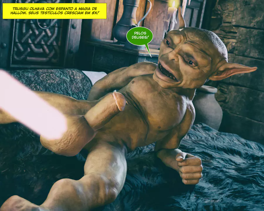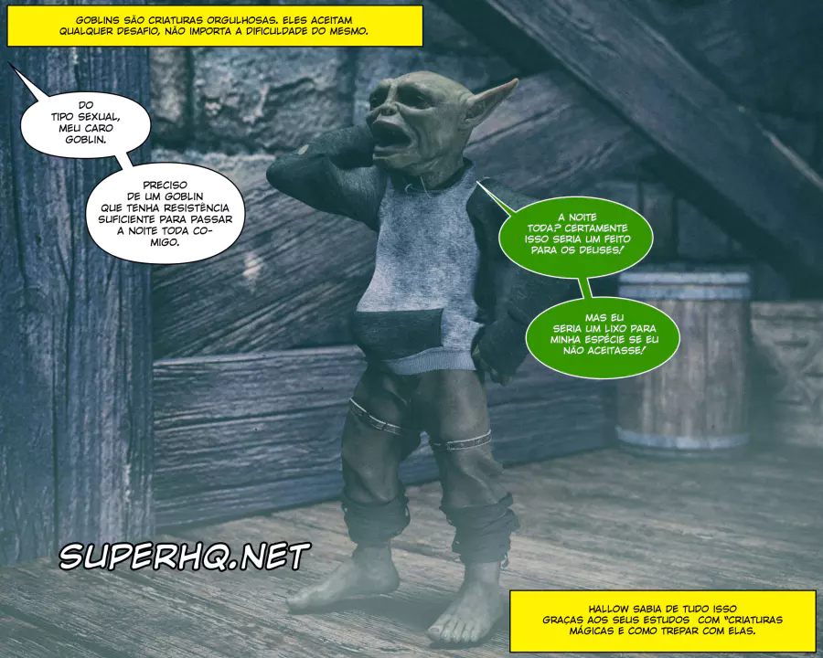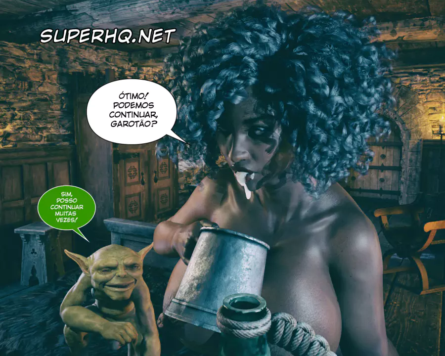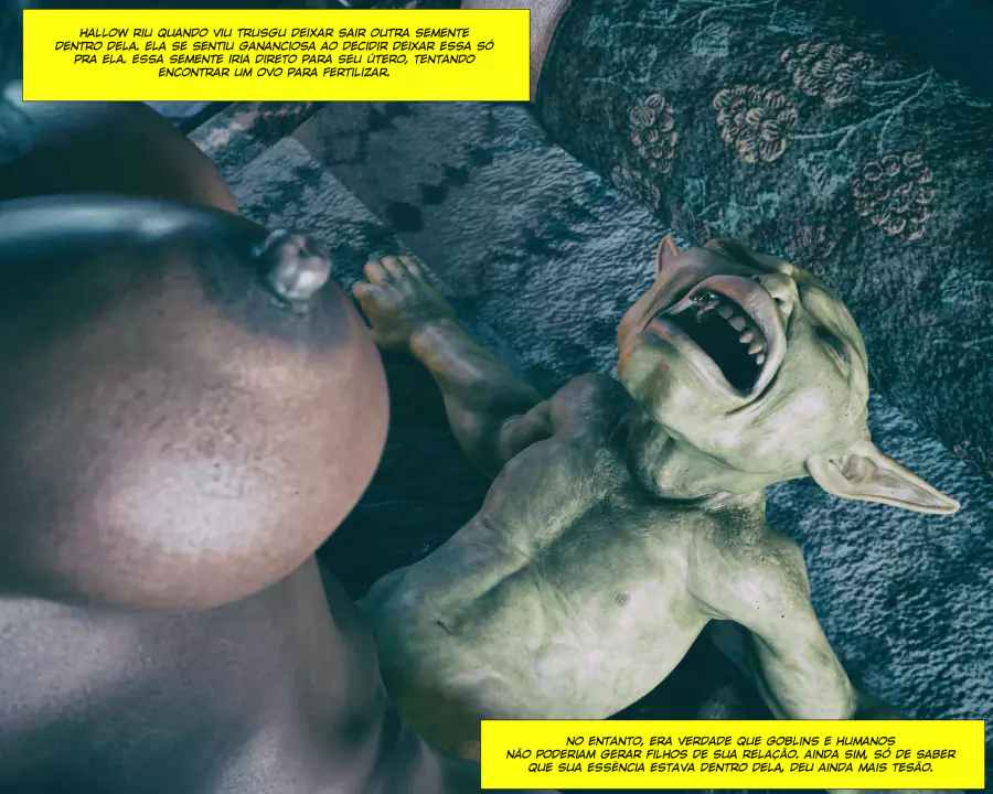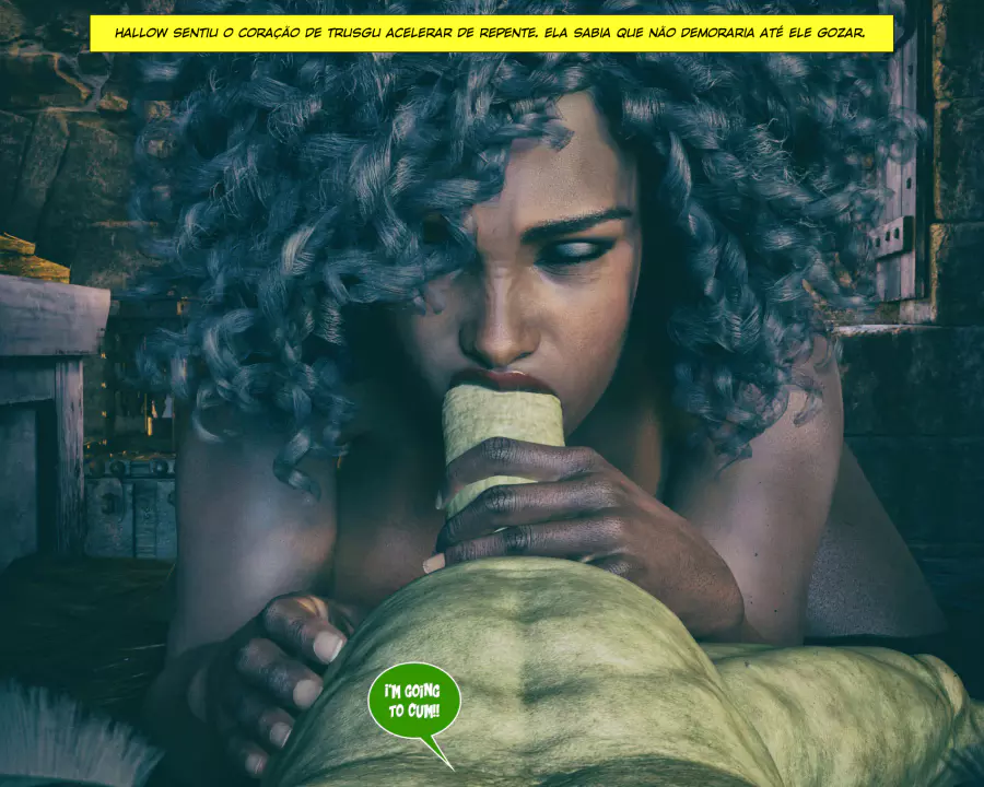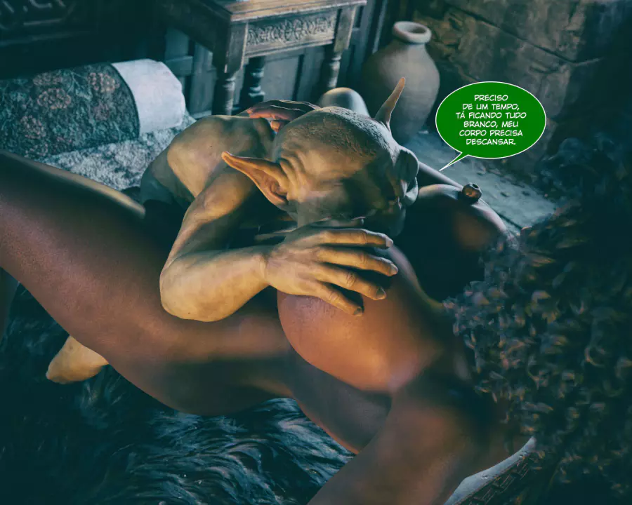 Descrição: Hollow, uma bruxa já formada, está procurando aumentar seus poderes fazendo alguns feitiços que precisam de ingredientes específicos. Um desses é o esperma de goblin, que infelizmente tá em falta na despensa dela. Só resta ela sair na calada da noite procurando por um goblin nas ruas disposto a comer a negra gostosa.